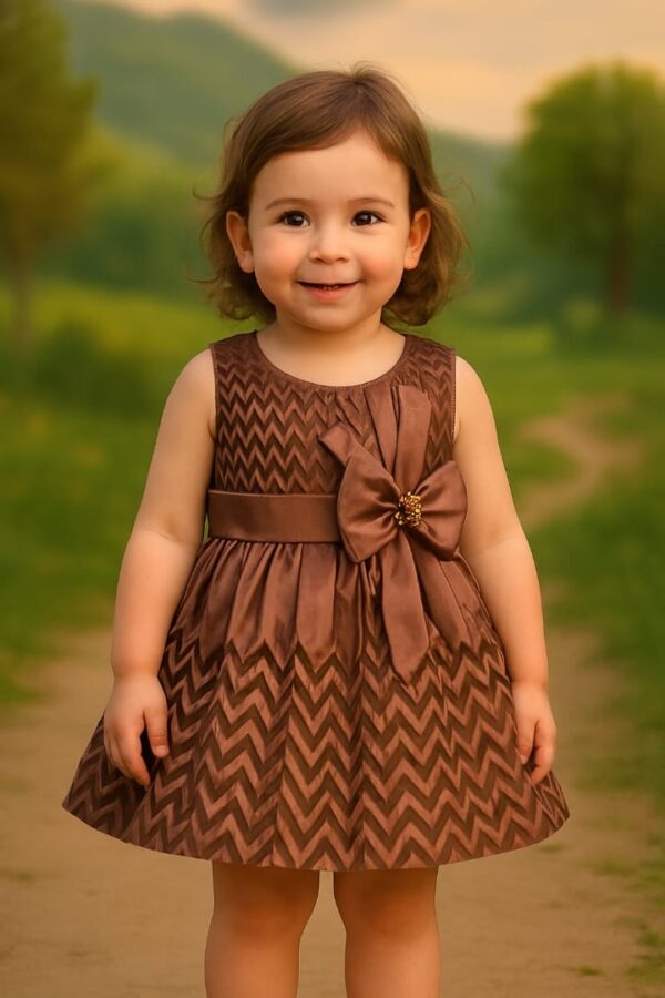Dress your little princess in the Chocolate Charm Baby Frock – Brown Chevron, designed to bring out elegance and comfort together.